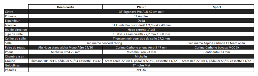 complets équipés de série par des roues Corima. Pour la transmission,