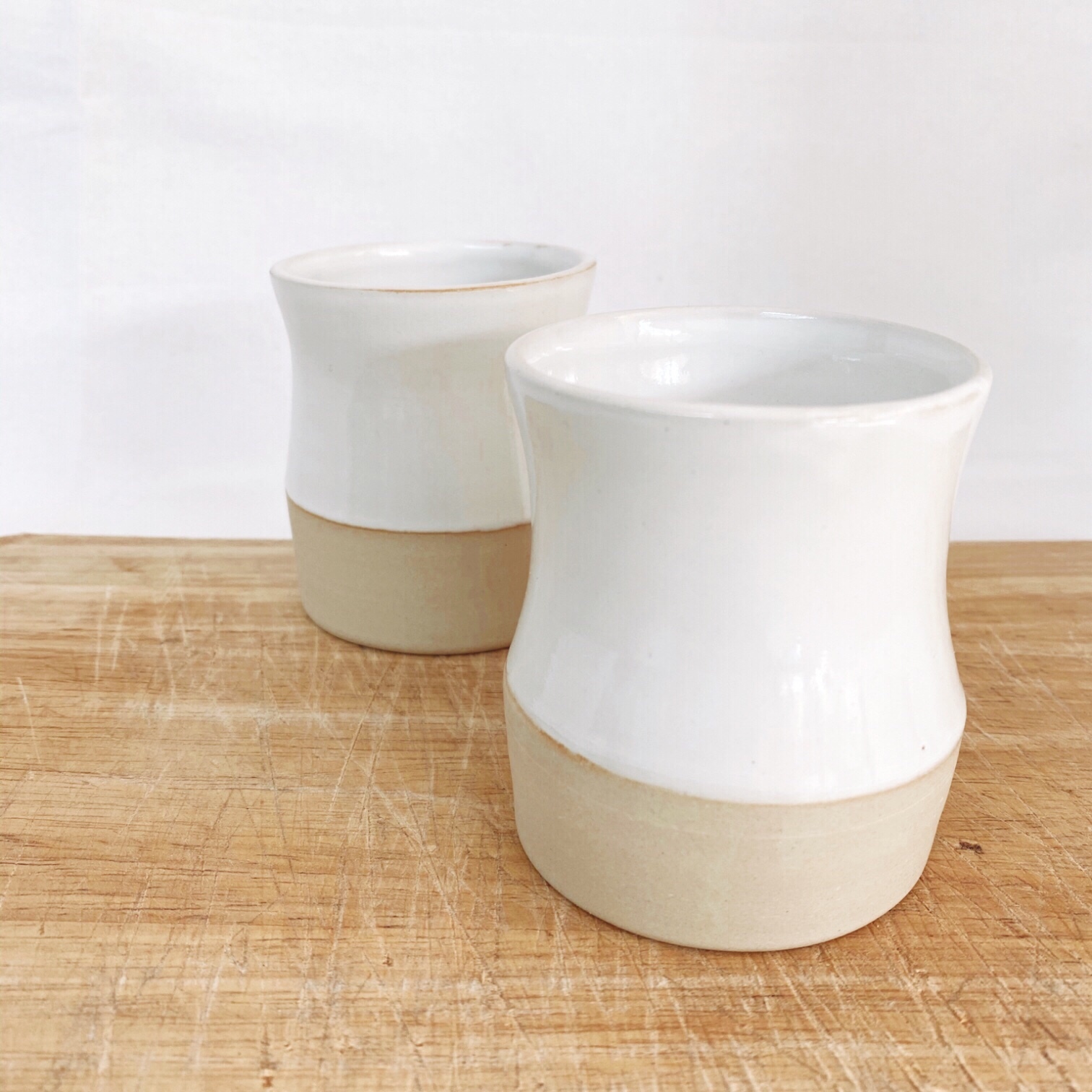 L’intérieur et la partie extérieure haute sont émaillés en blanc, la partie basse extérieure est laissée brute.